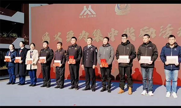 2025年11月21日,南京市公安局南京经济技术开发区新港公安分局举行见义勇为集体奖励活动,国投贸易南京仓库陈世桥等7名员工勇救着火货车的英勇事迹获得南京市见义勇为奖励。