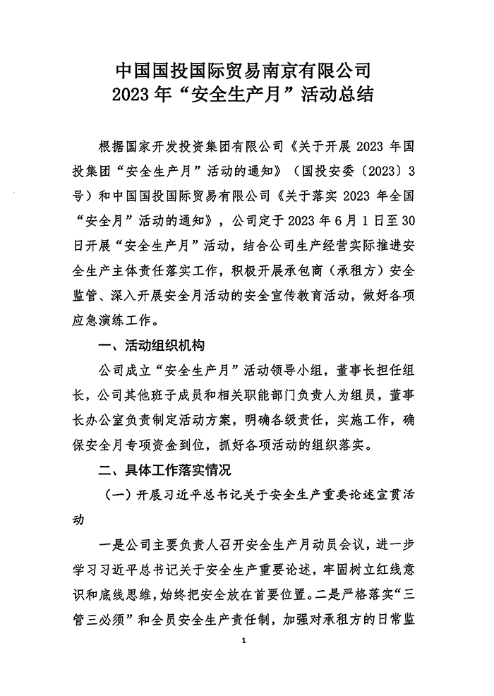 中国国投国际贸易南京有限公司2023年“安全生产月”活动总结